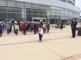 朝食後、部屋の片付けも終わり閉舎式を行いました。親切にお世話いただいたハーベストクラブ南紀田辺の方々に感謝を伝えました。