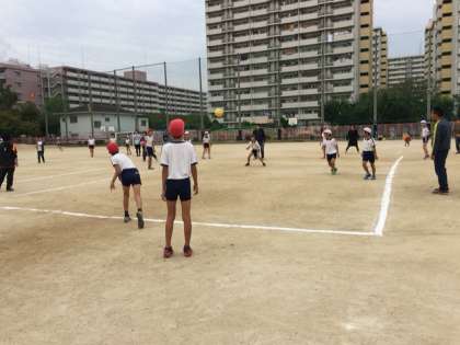 6年生は、親子ふれあい学習でドッジボールをしました。保護者の方々も子どもたちといっしょにする運動を楽しそうにしておられました。