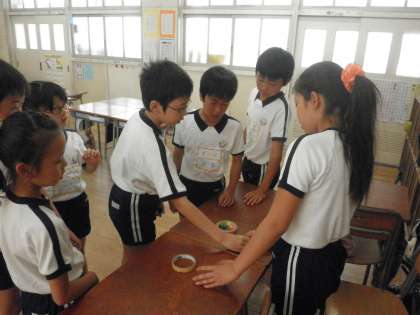 5年1組のお店は、「兵隊の人形をさがせ」と「お笑い劇場」でした。どちらもみんなを楽しませようと頑張っていました。