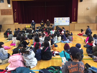 1月29日に地域の方々がグラウンドゴルフ・ビンゴ・豚汁の会を開いてくださいました。楽しく遊んだ後は、ほかほかの豚汁をいただきました。