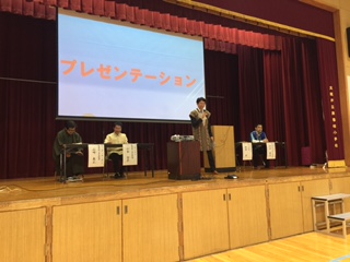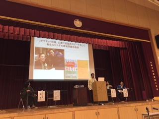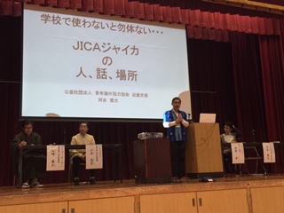 住之江区区長の西原昇さん、JICAの河合憲太さん、本校山本昌彦教諭で国際理解についてパネルディスカッションを行いました。