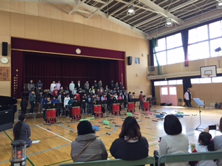 5年生は学習参観で音楽発表会を行いました。太鼓の演奏や合奏、合唱を行いました。