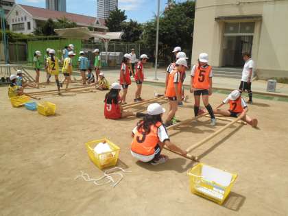 本年度は体育科を研究教科として研究をおこなっています。第1回目の授業研究会を6月11日に6年2組で行いました。単元は、「ハッピーステップ」(体つくりの運動)と「バトンをつなげ」(リレー…陸上運動)です。「ハッピーステップ」はバンブーダンスを取り入れて巧みな動きを楽しみました。また、「バトンをつなげ」では、バトンタッチを工夫して、スピード感のあるリレーをしました。また、子どもたちのバトンタッチの様子をタブレット端末で録画してよいバトンタッチができているか確認しました。また、小中連携で南港北中学校の校長先生をはじめ数名の先生方が、研究授業を参観に来られました。お忙しい中、お越しいただいた先生方ありがとうございました。