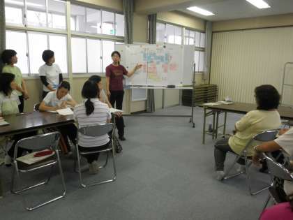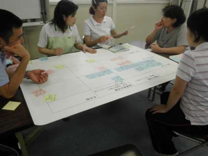 第1回研究討議会を行いました。今年度はワークショップ型の研究討議会を行うことにしています。ワークショップ形式にすると全員が活発に意見を言うことができ、成果と課題も明確になりました。また、最後に菅北小学校の大塚校長先生にご指導いただきました。今日の授業だけでなく、さまざまな見地から体育科についてご指導いただき本校の研究を深めていただきました。