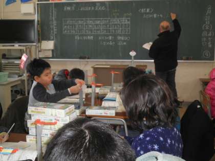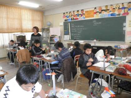 5年生は、2月学習参観で理科「ふりこのはたらき」をしました。実験をして振り子の長さと時間の関係を調べていました。