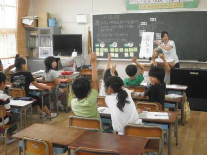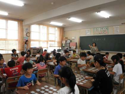 4年生は、4−1が五色百人一首、4−2は間違えやすい漢字の学習に取り組んでいました。