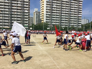 運動会まであとわずかとなりました。運動会の全体練習では開閉会式、応援合戦、全校競技の練習を行いました。本番が迫り練習にも熱を帯びてきました。