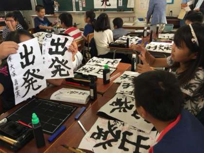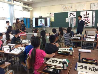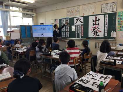 5年生は、がんばる先生支援 公開授業で書写の学習を行いました。ICTを活用した書写の授業は大変新鮮でした。