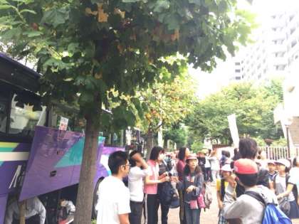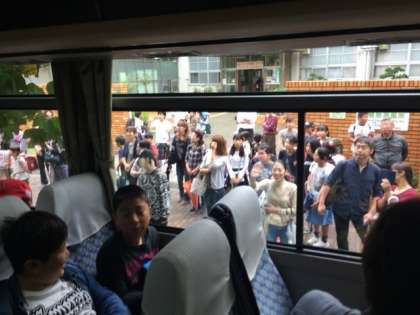 保護者の方々や先生方に見送られてバスは、子どもたちを乗せて出発しました。