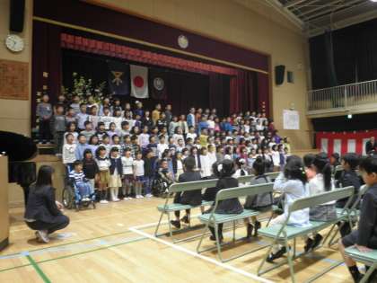 桜小学校に新しいなかまを迎えました!小学校「最初の授業」がスタート!ユニークな発想の答えで、会場中に驚きと感動を与えてくれた子どもたち!子どもたちを温かく見守っている保護者の中で、ニコニコ笑顔で答えてくれたお父さん!自分からまっすぐに手を挙げて、堂々と答えていただいた来賓の方!たった一人でも自分から自分の言葉で伝えた教職員!子どもたちはそんなたくさんの大人に見守られて安心した表情を浮かべていました。「学校は地域のものです」「子どもは地域の宝です」この地域の宝を、すべての大人で見守り、育てていきましょう!「チーム桜」はここからが始まりです!