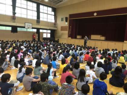 いよいよ5月に入りました。梅雨空っぽい空の下、子どもたちは元気よく門をくぐりました。4年生の遠足は残念ながら延期となりましたが、全員がそろって講堂に集まることができました。今日は子どもたちにある野球選手のお話をしました。連続試合出場の日本記録である2215試合を達成した衣笠選手のエピソードです。161個のデッドボールを受けながらも試合に出続けた衣笠選手。ある試合で相手ピッチャーの西本選手から左肩にデッドボールを受け、骨折しました。それでも次の試合では代打としてバッターボックスに立った衣笠選手。しかもフルスイングの三球三振!なぜ?フルスイングをしたのか?試合後のコメントで衣笠選手はこう答えました。「一つ目はファンのため!」「二つ目は自分のため!」そして、「三つ目は西本選手のため!」・・・三つ目に感動しました。・・・どんなときにも相手のことを気遣い、相手の立場になって考えることのできた人、それが衣笠選手です。まさに「自分も人も大切にする」ことを身を持って証明した人でした。桜小の子どもたち全員が、衣笠選手のように「自分も人も大切にできたら、いじめは起きません!」世界中の人々が、衣笠選手のように「自分も人も大切にできたら、戦争は起きません!」そして、どんなときにも大切にてほしいことは、「自分がされていやなことは人にしない・言わない」ことです。これを守ることは大人でも難しいことです。自分も守り通す自信はありません。でも、「失敗したらやり直す」このことを根気よく続けていくことが大切なことだと思っています。