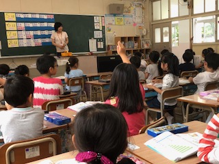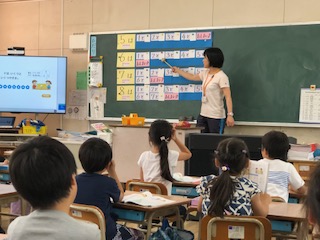「7は3と何?」「8は4と何?」リズムに合わせて、子どもたちは声に出します!音に合わせ、声に出すことで、定着率はよりアップします!子どもたちの楽しそうな、元気な声が教室に響いていました!ご家庭でも、子どもと一緒に声に出して、算数を楽しんでください!