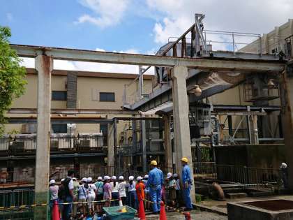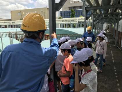 水道局のみなさんが総出で迎えてくださいました。見学では、家庭などから流れてきた下水が色々な水処理施設を通って段々とキレイになっていく様子を勉強しました。また、家から出た汚れた水が長い時間をかけて、川に流せる水になることを学びました!水道局の方からは、油を流すと、水をキレイにするための微生物が死んでしまうので、やめてほしいという願いを聞きました。クイズも交えながら子どもたちはたくさんのことを学びました!蛇口をひねると飲める水が出ること!このことがあたりまえではない国はたくさんあります。目の前のあたりまえに感謝できる人になってほしいです。