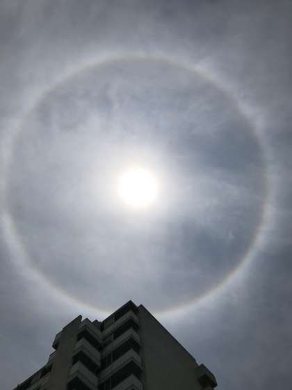 1年生がプールの学習をしている時、ふと空を見上げると、こんなものを見つけました!なにこれ?見たことないよ!丸い虹やわ!と驚きを隠せませんでした。この現象は、太陽の周りに白い光の輪のようなものが見えるもので、「日がさ」、英語で「ハロ」とも呼ばれ、薄い雲の中に含まれる氷の結晶に太陽の光が当たり屈折してできるようです。自然の神秘というか、自然の奥深さを感じました!世の中まだまだ知らないことだらけですね。もっともっと学ぶことがたくさんありそうです。学びは楽しい!みなさん!どんどん学びに来てくださいね!
