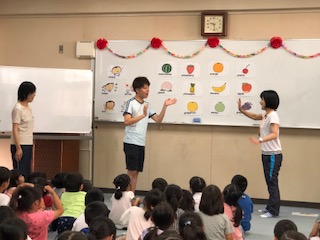 多目的室に1年生みんなが集まって、英語を楽しみました!あいさつから始まって、ロック、シザーズ、ペイパーと英語でじゃんけんをします!勝った子どもは相手に尋ねます!Do you like〜?Yes, I do!と英語でやりとり!大人も混じって英語にチャレンジ!あったかい!楽しい空気が流れてました!