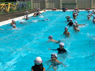 3年生の子どもたちがプールで躍動しています!伏し浮き、けのび、バタ足と低学年のころの「水に親しむ」から、「泳ぐ学び」に進化した子どもたち!命を守るを第一に、水を楽しめる!授業をつくっていきます!