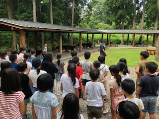 これからお世話になるホテルの方のお話を聞きました!昼夜の寒暖差の違いに気をつけるように教えていただきました。あいさつの子どももしっかりと自分の言葉で伝えることができました!