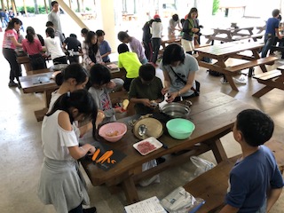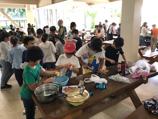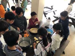 子どもたちはみんなで力を合わせて野菜を切ります!お互いに声を掛け合い具材を調理します!なかなかやるね!
