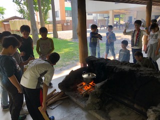 火の扱いは要注意!炎をいかにして真ん中で燃え上がらせるのか!子どもたちはああでもない、こうでもないと考えます!これがいい!自分で考えて、自分から行動する子どもたちです!