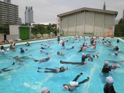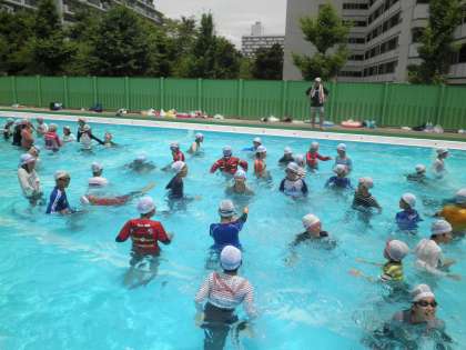 7月2日に5年生は、初めての着衣泳を行いました。服を着たまま水に入ると「体が重い。体の重さが倍になったみたい。」「泳ぎにくい。」などの感想を述べていました。ペットボトルやナイロン袋を浮きにして、体が浮くことを知り興味深く取り組みました。