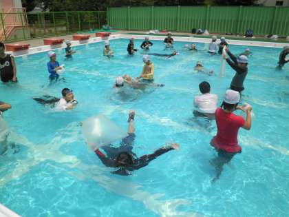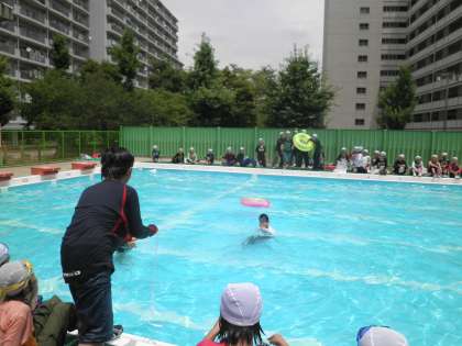 「この学習は自分の命を守るための学習です。」という先生の言葉から学習が始まりました。水の事故に巻き込まれても身を守るために、身近なペットボトルやビニル袋などを膨らませて浮きにすることや友達がおぼれていた場合についての対処の仕方などについても学習しました。