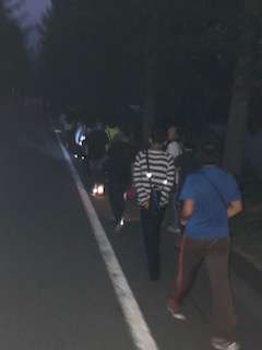 すっかりと暗闇漂う夜の世界に、子どもたちは出発しました!少し空模様はよくありませんが、住之江区で降ったような雨はなく、星空を見上げながら、夏の夜空を堪能しています!