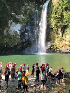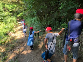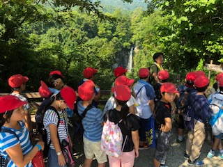 ホテルから歩いて20分!大自然を見つけました!滝の音に涼しさを感じながら、子どもたちは、自然を堪能しています!