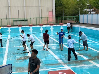 さて、私たち教職員も今日のプール清掃から始動しています!台風一過のムッとした暑さの中、子どもたちが気持ちよくプール学習ができる環境づくりをしました。来週から、いよいよ待ちに待った2学期がスタートです!ウキウキ、ワクワクの毎日を子どもたち、教職員、保護者、地域のみなさんと、つくりましょう!