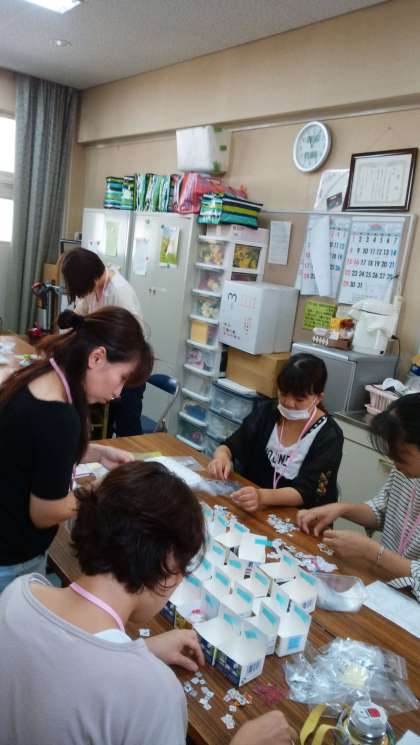 1学期末に第1回ベルマーク収集締め切り日を設けさせて頂いたことに伴い、7月18日19日の2日間に渡り、学級委員会一同が「できる日に、できる時間に、できる範囲で」を合言葉に、ベルマークの集計・発送作業を行いました。初めてなのでアイデアを出し合い、工夫しながら、ワイワイおしゃべりしながらの楽しい作業となりました。