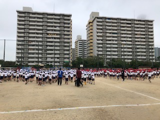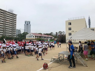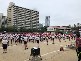 今日ははじめての全体学習を小雨が時折降る中行いました。開会式では入場から退場までの一連の流れを確かめ合いました。やりながら、ここはこうしたら!あそこはこうしよう!など修正点を見つけていきます。子どもたちははじめての全体の動きにも迷うことなく、しっかりと学びました。途中少し気の緩みも見られましたが、その姿から私たち大人も自分たちを見直す機会になりました。子どもを信じて、子どもに託す、最後はそこしかありません!お天気が少し心配ですが、天気なんてどうしようもありません!考えるだけ損です!とにかく子どもたちの可能性を信じて、大人も一緒に楽しみたいと思います!