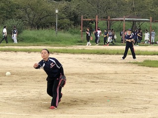 いよいよ次は女子チームの登場です!小雨が降り出し、いやな空模様のスタートでしたが、やる気は最高潮!みなさんの目は闘志に燃え上がっています!(ですよね!)試合は初回!ランナーは出したものの点数には残念ながら結びつかず!しかしどの選手も確実にバットに当てる見事なバッティングでした!相手の初回の攻撃は四球を見事に活かしてヒット1本で4点を先制されました!しかしその後を確実に抑えて、次の攻撃につなげます!二本の内野安打と四球で、ノーアウト満塁のチャンス!続くバッターも内野安打で1点追い上げ、尚もチャンスは続きます!続く内野ゴロの間に2点目!序盤を終えて2対4で追い上げます!中盤からは三者凡退に抑えるなど調子が上向き!攻守のリズムがよくなってきました!桜の攻撃!内野安打とエラーでチャンスかと思いきや、相手の名ショートに阻まれました!こちらも負けてません!その裏セカンドのナイス判断でダブルプレー!相手の攻撃の芽を摘みます!一進一退の試合が続きましたが、最後はタイムアップで6対2で惜敗しました!でも投手を中心に守りは相手に引けを取らず、素晴らしいチームでした!お疲れ様でした!