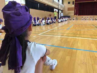 あいにくの雨模様!体育館には子どもたちの大きな輪がひろがっていました!各担任から今の自分たち、そしてこれからの自分たちに大切にしてほしいことを伝えました!何があっても微動だにしない!演技に集中する!120%の力を出すこと!など伝える言葉は違っても、子どもたち一人一人が自分らしく自分の力を出し切ることへの想いは共通しています!子どもたちもそのひとつひとつのメッセージを真剣に受け止めています!上手なエイサーは必要ありません!子どもたちが今まで積み上げた力を思う存分発揮して、桜の4年生らしいエイサーであることが大切です!みんなの顔を見ながら、安心している自分がいます!大丈夫!みんなならできる!