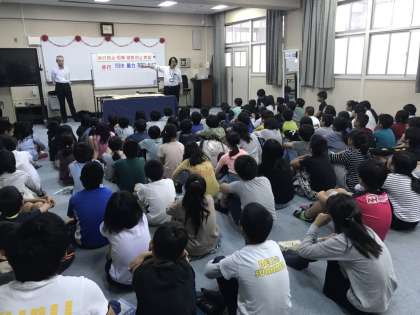 万引きは犯罪!当然子どもたちはわかっています!それでも世の中からはなくなっていません!むしろ犯罪の低年齢化の象徴とまで言われています。元警察官の講師2名が来校され、ペープサイト(紙人形劇)による万引きの現状や防止を子どもたちにわかりやすく伝えていただきました。また、Tik Tokなどに代表されるSNSのメリットやデメリットなどを、厳しく且つ丁寧に指導いただきました。子どもたちを犯罪から守ることは、もちろん大人の役割です!その上で、子どもたちには「自分の命は自分が守る」「となりの人の命を大切にする」ことを伝え続けます!ご家庭でも今日の学びを子どもたちと話し合ってください!
