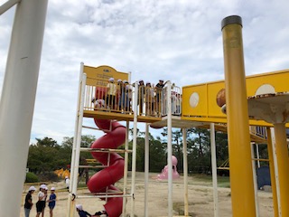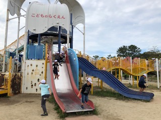 遊んでいる子どもの声や笑顔は本当にステキです!遊具に一目散に飛んでいく子どもたちでした!