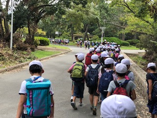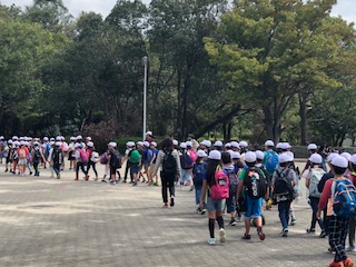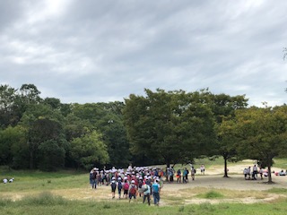 たっぷりと、ゆったりとランチタイムを過ごした子どもたちは次なる目的地の広場に向かいました!途中台風の爪跡がいく箇所か見られて、やはり当時の猛威を感じずには入られませんでした。今度の遊び場は午前とは違って、何もない中でどう遊ぶのか?子どもたちの創造性が養われます。遊びは子どもにとって学びの素地を養うための大切な経験です!どうしたらうまくいくのか?失敗の原因はなんだったのか?などを仲間と共有しながら、次への学びに変えていきます。何もないところから何を産み出せるのか!学びの奥深さです!学びは楽しい!