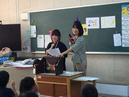 「 読み聞かせ」を改名し、「おはなしタイム 」となりました!火曜日担当は「コーンさん!だんごさん!」です。今日がデビューのお二人でした!紙芝居をやったあとは、ハロウィン?クイズで盛り上がりました。紙芝居も子どもたちにわかりやすいように工夫してくれ、子どもたちもノリノリでした!子どもたちはみなさんの声を楽しみにしています!たくさんのクラスで「おはなしタイム」ができたらいいですね!ともに楽しみませんか?