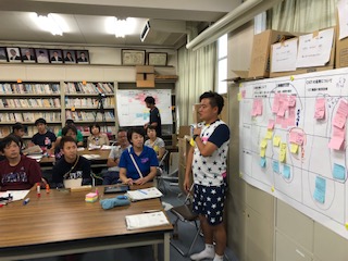 研究授業のあとは大人の学びです!それぞれが自分で考え、自分から動きます!グループに分かれて、良かった点、気になった点、質問などを児童の言動や授業者の支援やICTの活用の視点からまとめます。一人で考えたことをみんなで持ち寄ることで、新たな発見や気づきが生まれます。みんなで学ぶ意味はここにあります!教室も同じかもしれません!ともに学び、ともに育つ!大人も学び続けます!