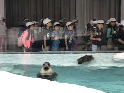 ラッコって!こんな感じ!びっくり!かわいい!と子どもたちは興味津々!ふれあいのできる場所では、すごーい!キャァーと言いながら恐る恐るの子や興奮しっぱなしの子など悲喜こもごもです!