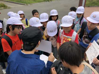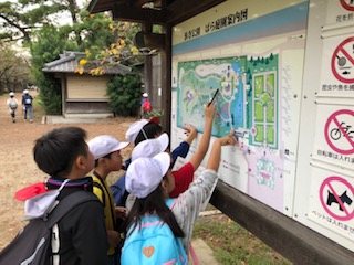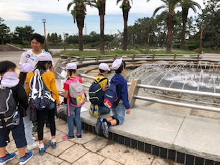 子どもたちの旅は続きます!漢字当てクイズの難関にもチャレンジ!途中迷いながらも、みんなで相談しながら、関門に挑みます!噴水の噴き上がる様子に安堵しながらも前を向く足は止まりません!がんばれ!