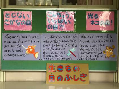 魚の目、昆虫の目、ネコの目それぞれの目には、それぞの特性があります!人間の目も同じ!ものの本質は見た目ではわからないことがあります。目に見えない部分を見ようとする目も必要です。そんな目も養いたいですね!