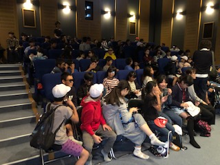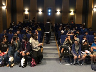 初めにシアターに入り、映像から学びます!3D眼鏡がみんな似合ってる!