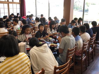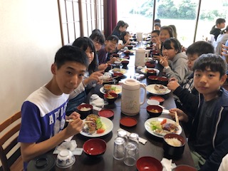 バスで夢の中だった子どもたちは少し食欲ない様子もありましたが、食事を目の前にすると元気も湧き出ていました!ラストの食事タイムを大いにエンジョイしています!