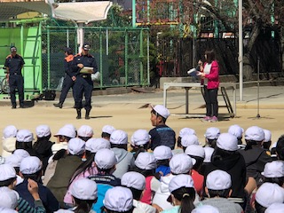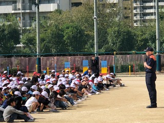火事です!火事です!理科室から出火!避難します!と放送が鳴り、子どもたちは避難を開始しました!口を覆いながら避難する子、運動場についても安心せず黙って指示を聴く子など、子どもたちは自分の命を自分が守ることを実践します!話し声や列を乱すなど課題もありました。今回の経験をもしもの時に活かせるように、ひびの学びを積み重ねていきます!