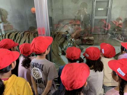 アライグマがぬいぐるみみたい!と目を凝らす子どもたち!カッコいい虎を前にしてますます目がらんらん!どの動物にも引き寄せられる子どもたちです!