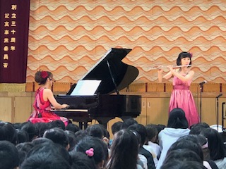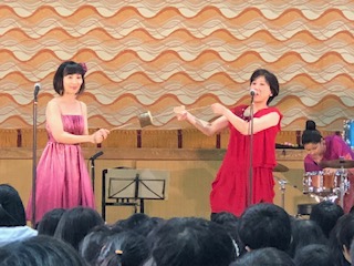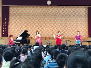 今日は音楽をまさに楽しむ日!アンサンブル「レネット」のみなさんが桜小に来てくれました!「レネット」とはフランス語で小さなカエルの意味だそうです!ドラえもんの歌からスタート!様々な楽器を紹介しながら演奏してくれました。子どもたちは聞き慣れた曲に体を揺られながら、音の世界を楽しみました!