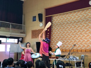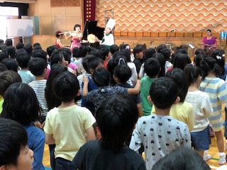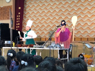 みなさんは様々なキャラクターに変身して、子どもたちを飽きさせません!さすがです!子どもたちは思わず立ち上がってしまうくらい興奮しました!アンコールの声も上がり、子どもたちの声を聞きます!「マリンバやりたかった!」「楽しかった!」と素直な今の気持ちを伝えました!最後はみんなで100 %勇気を歌って心をひとつにしました!とっても楽しかったです!レネットのみなさん!ありがとうございました。