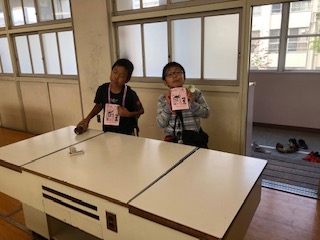 子どもたちはいろんなお店を周りながら、もうひとつのミッションがありました!それはスタンプを集めることです!どこに行って集めるかというと、校内に散らばって自由に歩き回っている桜の教職員8人がそれぞれスタンプを持っています!それらの教職員を見つけてその場でスタンプを押してもらいます!ただし、そのうち2人ははずれスタンプ!ダミーです!本物の6人のスタンプを集めると、なんと浮かび上がるのがある人物の似顔絵?だれの似顔絵かわかりますか?子どもたちに聞いてください!こうして、教職員も一緒になって楽しんだウォークラリーでした!PTAのみなさん!ありがとうございました!