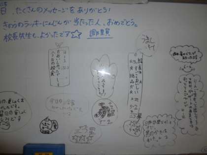 給食室前のメッセージボードは、きょうも給食室へのメッセージでいっぱいです。