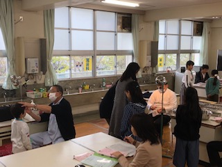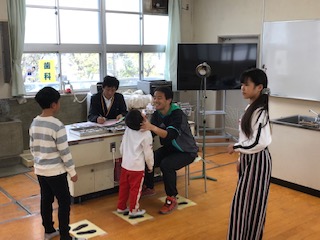 各検査会場には教職員と6年生が待っています!校医先生との診察バージョンと、教職員が行う検査バージョンに分かれます!5年生の優しいサポートで園児たちも安心してまわっています!5年生の方が緊張しているようです!がんばれサブリーダー!