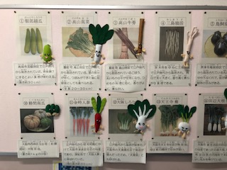 みなさん!なにわの伝統野菜を知ってますか?全部で18種類!えーそんなにあるの!びっくりしました!今、給食室前に絵付きで紹介されています!ふだんなかなか意識しない野菜たちを、ぜひこの機会に知ってあげてほしいです!みなさん!覗きに来てください!